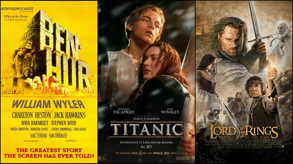 • Ben-Hur (1959), Titanic (1998) y El Retorno del Rey (2003) son las películas que han obtenido un mayor número de estatuillas en una misma noche con 11 cada una. Por el contrario la colosal “El color púrpura” (1985), de Steven Spielberg, tiene el difícil honor de no recibir ninguna distinción a pesar de partir como una de las favoritas con 11 nominaciones. Por su parte, Katherine Hepburn es la actriz más reconocida en los Oscar, con 12 nominaciones y 4 premios. Jamás fue a recogerlo. Y la más nominada es la camaleónica veterana Meryl Streep con 19. A pesar de estos números es el productor Walt Disney quien cosecha un mayor reconocimiento a lo largo de los años con más de 60 nominaciones y 26 Oscar.